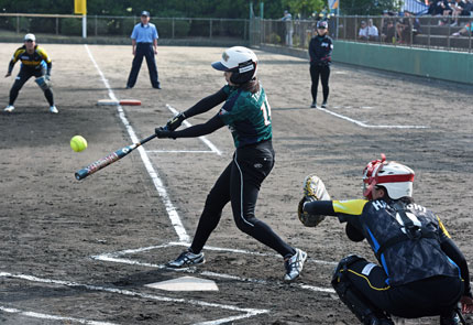 《本》:本塁打 《三》:三塁打 《二》:二塁打 | 「第58回日本女子ソフトボールリーグ」が4月19日(土)に開幕。石川県金沢市・金沢市営専光寺ソフトボール場を会場に、今シーズンの「開幕」を迎える「第1節」を開催した。 昨シーズン優勝チーム、第3位、第5位、第7位、第9位、第11位の6チームで構成される「プラチナセクション」第1節第3試合は、昨シーズン5位、最後の最後まで上位争いを演じながら「日本リーグ優勝」を争う「順位決定節Aブロック」進出を逃したCitrine Ichinomiyaと、昨シーズン「悲願」の「日本リーグ」優勝を果たし、一つの「節目」を迎え、今シーズンコーチングスタッフを一新。チームの構成的にも「一時代」を築いてきたベテラン勢が現役を退き、大幅に戦力を入れ替えて「連覇」を狙うMORI ALL WAVE KANOYAが対戦した。 先攻のMORI ALL WAVE KANOYAは初回、Citrine Ichinomiyaの先発・川原麻里の立ち上がりを攻め、1番・藤田直が試合開始直後の2球目をとらえ、先頭打者本塁打! 続く2番・竹原由菜も藤田直の「一発」を再現するかのようにセンターバックスクリーンに運ぶ二者連続の本塁打を放ち、「連覇」を狙う「王者」が強烈な先制パンチを浴びせた。 ![]() (※MORI ALL WAVE KANOYAは初回、いきなりの二者連続本塁打で2点を先制!) これで勢いづいたMORI ALL WAVE KANOYAは4回表、死球の走者を一塁に置き、7番・濱本叶美がバント安打でチャンスを広げ、8番・黒木ひらりの適時二塁打で塁上の走者を一掃し、2点を追加。5回表には3番・鈴木真由子の適時三塁打と四球で出塁した走者によるダブルスチールで2点を加え、6回表には5安打を集中し、3点を追加。11安打の猛攻で9点を奪い、Citrine Ichinomiyaを圧倒した。 Citrine Ichinomiyaは初回にいきなり強烈な先制パンチを食らい、そのショックを引きずってしまったか、中盤以降ズルズルと失点し、5回裏に1点を返し、完封を免れるのが精一杯。投打に元気なく、大差で敗れてしまった。 ![]() (※Citrine Ichinomiyaは投手陣が踏ん張れず……大差で敗れた) 開幕初戦を勝利で飾ったMORI ALL WAVE KANOYAは、先発の「ルーキー」猩々紫月が5回1失点と好投。しっかりと「先発」の役割を果たし、今後の活躍を期待させる好投を見せ、百戦錬磨の「ベテラン」竹原由菜が2イニングを無失点で締め、9-1で大勝。「連覇」へ向け、好スタートを切った。 | |||||||||||||||