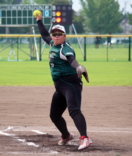 《本》:本塁打 《三》:三塁打 《二》:二塁打 | 「第58回日本女子ソフトボールリーグ」交流節は、富山県富山市・岩瀬スポーツ公園ソフトボール広場を会場に開催され、前半戦の成績をもとに「プラチナセクション」1位・3位・5位のチームは、「サファイアセクション」2位・4位・6位のチームと、「プラチナセクション」2位・4位・6位のチームは、「サファイアセクション」1位・3位・5位のチームと、それぞれ3試合を行う試合方式が採用されている。 大会初日(7月4日/金)A球場第1試合は、前半戦終了時点で4勝1敗、大和電機 Blue Lakersと「同率」で並び、「直接対決」の勝敗の差で「プラチナセクション」1位となり、この「交流節」に臨んだ靜甲と、同じく前半戦終了時点で4勝1敗、こちらは「同率」で並んだYKKとの「直接対決」に敗れたことが響き、「サファイアセクション」2位となったVONDS市原 Emerald Greenが対戦した。 試合が動いたのは4回裏、靜甲がVONDS市原 Emerald Greenの「エース」渡邉双葉をとらえ、この試合「4番」に起用された「ルーキー」小黒美空が初球を狙い打ち。センター頭上を越える先制のソロホ―ムランを放ち、靜甲が先取点を挙げた。 ![]() (※靜甲は4回裏、「ルーキー」小黒美空の「一発」で先取点を挙げた) 守っては、先発・小井沼美月が好投! 5回までVONDS市原 Emerald Green打線をわずか2安打に抑え込み、小黒美空の「一発」での援護もあり、このまま1点のリードを守り切るかに見えた。 終盤6回表、VONDS市原 Emerald Green打線が突如「お目覚め」。二死走者なしから4番・吉田汐里が四球を選び、出塁すると、続く5番・小野寺萌がレフト線へ二塁打を放ち、二死ながら二・三塁の「一打逆転」のチャンスを作ると、6番・千葉春海への四球となる投球がワイルドピッチとなり、まず同点。二塁走者が三塁へ進み、四球で出塁した千葉春海も一気に二塁まで進塁し、再び二・三塁と攻め立て、7番・紺野穂乃香が走者一掃の右中間三塁打を放ち、2点を勝ち越し、8番・石井麻菜にも二遊間を抜くタイムリーが飛び出し、この回一挙4点を挙げ、試合をひっくり返した。 4-1と逆転に成功したVONDS市原 Emerald Greenはこのリードを「エース」渡邉双葉が被安打2、本塁打による1失点のみで守り切り、見事な完投勝利。「交流節」の初戦を勝利で飾った。 ![]() (※1失点の完投勝利! VONDS市原 Emerald Greenの「エース」渡邉双葉) 勝ったVONDS市原 Emerald Greenは「1敗」を堅持し、通算成績5勝1敗と星を伸ばした。 敗れた靜甲は2敗目。「勝ちパターン」の試合をひっくり返され、手痛い逆転負けを喫した。 | |||||||||||||||