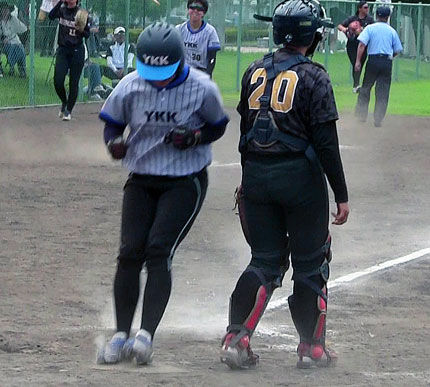 《本》:本塁打 《三》:三塁打 《二》:二塁打 | 「第58回日本女子ソフトボールリーグ」交流節は、富山県富山市・岩瀬スポーツ公園ソフトボール広場を会場に開催され、前半戦の成績をもとに「プラチナセクション」1位・3位・5位のチームは、「サファイアセクション」2位・4位・6位のチームと、「プラチナセクション」2位・4位・6位のチームは、「サファイアセクション」1位・3位・5位のチームと、それぞれ3試合を行う試合方式が採用されている。 大会初日(7月4日/金)C球場第2試合は、前半戦終了時点で0勝5敗、開幕から未だ勝ち星なく「プラチナセクション」6位のルネス紅葉スポーツ柔整専門学校と、前半戦終了時点で4勝1敗、VONDS市原 Emerald Greenと「同率」で並び、「直接対決」に勝利したことがモノをいい、「サファイアセクション」1位で「ホーム」開催となる「交流節」に臨んだYKKが対戦した。 ルネス紅葉スポーツ柔整専門学校は2回表、「今シーズン」初登板となったYKKの「ルーキー」室山凛に簡単に二死を取られたものの、8番・木村天音がレフトスタンドに運ぶ先制のソロホームラン! 先手を取った。 1点を追うYKKは「自慢」の強力打線が思うように機能せず、毎回のように走者を出しながら得点できず、迎えた5回裏、相手守備の乱れもあり、ようやく1-1の同点に追いついた。 それも束の間、その直後の6回表、この回から登板した木澤愛梨が2番・西出蓮実がライトスタンドに運ばれる「一発」を浴びてしまい、再び1点差。2-1とルネス紅葉スポーツ柔整専門学校がリードしたまま、試合は最終回を迎えた。 YKKは7回裏、好投を続けるルネス紅葉スポーツ柔整専門学校の先発・平山芽依をついにとらえ、一死から1番・中谷美里がバント安打で一塁に生き、2番・東郷佑実がセンター前ヒットで続き、一・二塁。ここでYKKが誇る宮坂佑希、大内麻里奈の「3・4番コンビ」を迎えると、意識し過ぎ、警戒し過ぎ……で二者連続のフォアボールで押し出し。「自滅」する形で土壇場でYKKに同点に追いつかれてしまった。こうなるとYKKに傾むいた試合の流れは止められず……5番・前田あみが「四球の後の初球を狙え!」の鉄則通り、初球を狙い打ち! 打球はレフトの芝生に弾み、YKKが劇的なサヨナラ勝ちを収めた。 ![]() (※YKKが苦しみながらも最終回、逆転サヨナラ勝ち!) 開幕から勝ち星なしでこの「交流節」を迎えたルネス紅葉スポーツ柔整専門学校は、YKKの「ホーム」でその「強力打線」を向こうに回し、先発・平山芽依が好投。今シーズン「初勝利」は目前だったのだが……。勝利を意識し過ぎたか、YKKが誇る「3・4番コンビ」のオーラに屈したか……リードを守り切れず、何とも惜しい試合を落としてしまった。 ![]() (※ルネス紅葉スポーツ柔整専門学校は先発・平山芽依が好投し、勝利は「目前」だったのだが……) 勝ったYKKは通算成績5勝1敗。九死に一生を得て、「1敗」を堅持した。 敗れたルネス紅葉スポーツ柔整専門学校は開幕から勝ち星なしの6連敗。明日こそ「今シーズン初勝利」といきたいところだ。 | |||||||||||||||