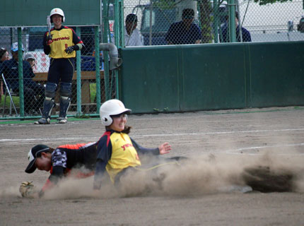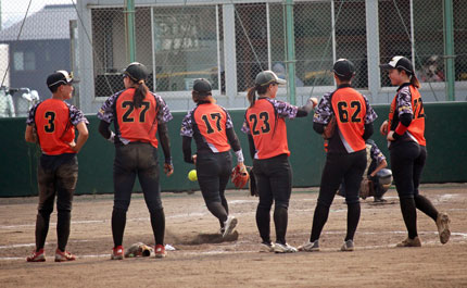 《本》:本塁打 《三》:三塁打 《二》:二塁打 | 「第58回日本女子ソフトボールリーグ」交流節は、富山県富山市・岩瀬スポーツ公園ソフトボール広場を会場に開催され、前半戦の成績をもとに「プラチナセクション」1位・3位・5位のチームは、「サファイアセクション」2位・4位・6位のチームと、「プラチナセクション」2位・4位・6位のチームは、「サファイアセクション」1位・3位・5位のチームと、それぞれ3試合を行う試合方式が採用されている。 大会初日(7月4日/金)D球場第3試合は、この日の第2試合で「サファイアセクション」3位の小泉病院 Blue Arrowsと対戦し、1-6と完敗。通算成績4勝2敗となった大和電機 Blue Lakersと、第1試合で「プラチナセクション」4位の花王コスメ小田原 フェニックスに1-2の1点差で敗れ、1勝5敗となった厚木SCが対戦した。 両チーム無得点で迎えた3回裏、大和電機 Blue Lakersは、厚木SCの先発・古本緋里を攻め、四球で出塁した走者を塁上に置き、4番・新海雪奈がセンター頭上を越えるスリーランホームラン! 「一振り」で3点を先制すると、5番・堀川美瑠瑠、6番・森本華生、7番・矢﨑月菜の3連打でさらに1点を追加。この回大量4点を挙げ、試合の大勢を決めてしまった。 大和電機 Blue Lakersはその後も攻撃の手を緩めず、5回裏には4番・新海雪奈の2打席連続となる本塁打を含む4本の長短打を集中し、3点を追加。6回裏には7番・矢﨑月菜に満塁ホームランが飛び出し、15安打・11得点の猛攻で11-0の大差で圧勝。通算成績5勝2敗とし、上位争いに踏み止まった。 ![]() (※「大和電機らしい」アグレッシブな攻撃で大量得点!) 敗れた厚木SCは「課題」の投手陣が大和電機 Blue Lakersの「強力打線」に飲み込まれてしまい、大敗。この日のダブルヘッダーで連敗を喫し、通算成績1勝6敗となった。 ![]() (※改めて「課題」を抱える投手陣の問題が浮き彫りとなった厚木SC) | |||||||||||||||
