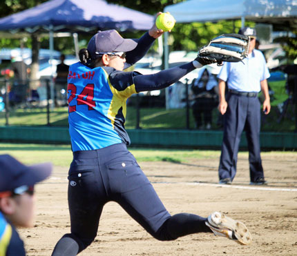 《本》:本塁打 《三》:三塁打 《二》:二塁打 | 「第58回日本女子ソフトボールリーグ」第3節・プラチナセクションは茨城県古河市・幸土上大野グラウンドを会場に開催され、第1日・第3試合は、前半戦を6勝2敗で折り返し、「同率首位」に並ぶ大和電機 Blue LakersとMORI ALL WAVE KANOYAが激突する「首位攻防戦」となった。 試合は「首位攻防戦」にふさわしい緊迫した投手戦となり、MORI ALL WAVE KANOYAは大和電機 Blue Lakersの先発・斉藤未来の前にわずか1安打。攻略の糸口を見出せないまま、「0」(ゼロ)行進を繰り返した。 一方、大和電機 Blue Lakersも「自慢」の強力打線がチャンスは作るものの、MORI ALL WAVE KANOYAの「エース」竹原由菜の「ベテラン」らしい落ち着き払った冷静なピッチングの前に4回裏の無死二塁、5回裏の一死二・三塁、6回裏、7回裏の一死二塁と毎回のように得点圏に走者を進めながら「あと一本」が出ず……両チーム得点できないまま、試合は延長タイブレークへともつれ込んだ。 MORI ALL WAVE KANOYAは延長8回表、タイブレークの走者を二塁に置き、1番・藤田直の死球で無死一・二塁としたものの、強攻策が「裏目」となり、ライトフライ、セカンドゴロ(一塁走者が二塁フォースアウト)で二死となり、4番・藤野亜美の当たりは「快音」を残したものの、センター真正面。無得点に終わった。 その裏、大和電機 Blue Lakersは9番・古賀藍奈が故意四球で歩かされ、無死一・二塁となった後、こちらも強攻策に出たものの、空振り三振、サードゴロ(二塁走者が三塁フォースアウト)で二死となり、チャンスを逃したかと思われたが、3番・矢﨑月菜の右中間への当たりがサヨナラ安打となり、熱戦に終止符。大和電機 Blue Lakersが劇的なサヨナラで1-0の最少得点差で勝利を収め、通算成績を7勝2敗とし、第2試合で勝利した靜甲と並び、首位に立った。 この試合の「勝利の立役者」は左腕・斉藤未来。リーグトップのチーム打率を誇るMORI ALL WAVE KANOYAの「強力打線」を内野安打1本に抑え込み、完封。延長タイブレークにもつれ込む緊迫の投手戦を制した。 ![]() (※「首位攻防戦」勝利の立役者となった大和電機 Blue Lakers・斉藤未来) 一方、MORI ALL WAVE KANOYAも百戦錬磨の「ベテラン」竹原由菜が持ち味を十二分に発揮! 走者を出しながらも「決してホームは踏ませない!」という強い「意志の力」を感じさせるピッチングで決定打を許さず力投を続けたが……打線の援護なく、延長8回力尽き、通算成績6勝3敗。首位の座から滑り落ち、「同率3位」に後退した。 ![]() (※MORI ALL WAVE KANOYA・竹原由菜もベテランらしいピッチングを見せたのだが……) | |||||||||||||||
