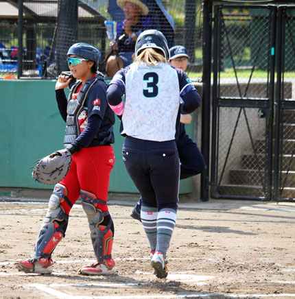 《本》:本塁打 《三》:三塁打 《二》:二塁打 | 「第58回日本女子ソフトボールリーグ」第3節・プラチナセクションは茨城県古河市・幸土上大野グラウンドを会場に開催され、第2日・第1試合は、前日(9月6日/土)、Citrine Ichinomiyaとの延長タイブレークにもつれ込む接戦を4―3で制し、通算成績6勝3敗で「同率3位」につける花王コスメ小田原 フェニックスと、前日の靜甲戦で0-8の完敗。ここまで1勝8敗で最下位と苦しい状況が続くルネス紅葉スポーツ柔整専門学校が対戦した。 先攻の花王コスメ小田原 フェニックスは初回、ルネス紅葉スポーツ柔整専門学校の先発・平山芽依の制球の乱れに乗じて連続四球、ダブルスチール、四球で無死満塁とし、4番・山岡未歩が二遊間を抜くタイムリー! 二者が還り、2点を先制すると、一死後、5番・松田采弓がレフト頭上を越えるタイムリーツーベースを放ち、この回3点を先制した。 ![]() (※先攻の花王コスメ小田原 フェニックスは初回に3点を先制し、試合の主導権を握った) 初回に先制し、試合の主導権を握った花王コスメ小田原 フェニックスは4回表にも、連続四球で無死一・二塁となったところで、ルネス紅葉スポーツ柔整専門学校が投手交代。この試合「DP」8番で出場していた小林美紅が「FP」ピッチャーの守備を兼務し、登板したが9番・森雅の内野安打で満塁とされ、1番・西愛美にレフト前タイムリーを浴び、1点を追加されてしまった。 4点をリードされたルネス紅葉スポーツ柔整専門学校は6回裏、ここまで無得点に抑えられていた花王コスメ小田原 フェニックスの「エース」栗原ななみから2番・西出蓮実がセンター頭上を越えるソロホ―ムランを放ち、1点を返したが反撃もここまで。最終回はリリーフした小森美咲に無得点に抑えられ、1-4で敗れ、通算成績1勝9敗となってしまった。 ![]() (※この試合、3打数2安打・本塁打1・打点1・盗塁1と活躍したルネス紅葉スポーツ柔整専門学校・西出蓮実) 勝った花王コスメ小田原 フェニックスは今節連勝! 通算成績7勝3敗とし、上位争いに踏み止まった。 | |||||||||||||||