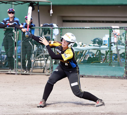 《本》:本塁打 《三》:三塁打 《二》:二塁打 | 「第58回日本ソフトボールリーグ」第4節・プラチナセクションは栃木県大田原市・美原公園第2球場を会場に開催され、第1日・第1試合は、第3節終了時点で通算成績8勝2敗、「単独首位」に立つ靜甲と、ここまで2勝8敗、5位・Citrine Ichinomiyaが対戦した。 両チーム無得点で迎えた3回表、初回、2回表と得点圏に走者を進めながら得点できずにいた靜甲は、Citrine Ichinomiyaの先発・川原麻里をとらえ、3番・井上葉菜がワンボール・ワンストライクからの3球目をとらえ、センター頭上を越えるソロホ―ムラン! 高い放物線を描く、滞空時間の長い「一発」で先取点を奪った。 ![]() (※靜甲は3回表、「主砲」井上葉菜の「一発」で先取点を奪う!) この「一発」で勢いづいた靜甲は5回表にも、一死から先制のソロホ―ムランを放った3番・井上葉菜がセンター前にクリーンヒット! 続く4番・小黒美空のライト線ギリギリに落ちる当たりが適時三塁打となり、一塁走者が一気にホームイン! 2点目を挙げ、なお続く一死三塁のチャンスに5番・半田由佳がヒットエンドランを決め、三塁走者が生還。3点差にリードを広げた。 守っては、先発・小井沼美月が「適度に荒れる」ピッチングで的を相手打線に絞らせず、5回までわずか1安打、無失点のピッチングでしっかりと先発の役割を果たし、最後はこのところ調子を上げている豊田彩乃がテンポの良いピッチングで2イニングをパーフェクトに抑え、3-0の完封勝ち。通算成績を9勝2敗とし、「単独首位」の座を守った。 敗れたCitrine Ichinomiyaは先発・川原麻里が「一発」を浴びて3回表に先制され、5回表には靜甲のソツのない攻めで2点を追加され、3点差をつけられると、頼みの打線が靜甲投手陣の前に完全に沈黙。わずか1安打では打つ手がなく、完封負け。通算成績2勝9敗となってしまった。 ![]() (※Citrine Ichinomiyaは打線が振るわず、完封負け) | |||||||||||||||