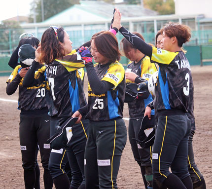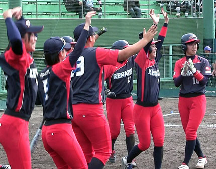 《本》:本塁打 《三》:三塁打 《二》:二塁打 | 「第58回日本ソフトボールリーグ」第4節・プラチナセクションは栃木県大田原市・美原公園第2球場を会場に開催され、大会2日目(10月11日/土)に雨天順延となった2試合(第2試合・第3試合に予定されていた2試合)が予備日(10月13日/月・祝)に順延され、実施された。 第1試合は通算成績2勝10敗で5位のCitrine Ichinomiyaと、ここまで1勝11敗で最下位のルネス紅葉スポーツ柔整専門学校が対戦した。 後攻のCitrine Ichinomiyaは初回、ルネス紅葉スポーツ柔整専門学校の先発・小林美紅の立ち上がりを攻め、二死走者なしから3番・林佑奈が痛烈な当たりのレフト前ヒットを放ち、出塁。続く4番・森光眞子の一・二塁間を抜く安打で一塁走者が一気に三塁に進塁。打った森光眞子も三塁への送球の間に二塁へ進塁し、二・三塁とした後、5番・宮本星南が右中間へ先制のタイムリー! 二者を迎え入れ、Citrine Ichinomiyaが初回に2点を先制した。 2点を追うルネス紅葉スポーツ柔整専門学校は3回表、2番・西出蓮実のショート後方に上がった打球がショートとセンターの間に落ちる幸運な二塁打となり、3番・松永栞がセンター頭上を越える同点のツーランホームラン! 2−2の同点に追いついた。 Citrine Ichinomiyaはその裏、3番・林佑奈がサードゴロエラーで出塁すると、2つのワイルドピッチで三塁まで進み、5番・宮本星南のレフトへの犠牲フライで三塁走者が還り、1点を勝ち越し。さらに6番・山田江梨花のレフトオーバーの二塁打で再び得点圏に走者を進め、7番・宮脇瑚々亜のショートゴロが一塁への悪送球を誘う間に1点を追加。この回2点を挙げ、4-2とリードを奪った。 Citrine Ichinomiyaは5回裏にも四球、安打等で二死一・二塁とし、代打・奥村涼のセンター前に落ちるタイムリーで1点を追加。5-2と3点差にリードを広げ、これで勝負あったかと思われた。 しかし、ルネス紅葉スポーツ柔整専門学校が土壇場の最終回、猛反撃に転じ、5回から先発・川原麻里の後を受け、登板していた山下紗季に襲いかかり、5本の長短打を集中し、打者一巡の猛攻! 一挙4点を奪い、6-5と試合をひっくり返した。 ![]() (ルネス紅葉スポーツ柔整専門学校は最終回、打者一巡の猛攻を見せ、一挙4点を奪い、逆転に成功!) 逆に1点を追う立場となったCitrine Ichinomiyaは7回裏、この回先頭の3番・林佑奈が四球で出塁。4番・森光眞子は「最終回で1点のビハインドの状況」でも迷わず打って出て、センター前ヒットで無死一・二塁とチャンスを広げた。5番・宮本星南のショートゴロで一塁走者が二塁フォースアウトとなった後、再出場していた6番・山田江梨花が四球を選び、満塁。ここで5回裏に代打で起用され、そのまま7番に入っていた奥村涼がセンターへ犠牲フライを打ち上げ、三塁走者が還り、6−6の同点に追いつき、試合は延長タイブレークへともつれ込んだ。 試合はその後も両チーム一歩も譲らず、延長8回表、ルネス紅葉スポーツ柔整専門学校が「FP」として先発ピッチャーであった小林美紅が試合途中から「DP」の打撃を兼務。7回表にも逆転の口火を切る二塁打を放っていたが、ここでもしぶとく一・二塁間を抜くタイムリーを放ち、1点を勝ち越し。しかし、その裏、その小林美紅が一死三塁から痛恨のワイルドピッチ。Citrine Ichinomiyaが7-7の同点に追いつき、9回表にはルネス紅葉スポーツ柔整専門学校が4番・奥野陽菜子、5番・武政芽依の長短打、7番・坂丸菜奈美の適時二塁打で3点を勝ち越し、「今度こそ勝負あった」と誰もが思ったが……その裏、Citrine Ichinomiyaも3番・林佑奈、4番・森光眞子の長短打、6番・山田江梨花のタイムリーでキッチリ3点を返し、10-10の同点。試合は延長10回に突入し、ルネス紅葉スポーツ柔整専門学校は二死満塁と攻め立てながら得点ならず……。その裏、Citrine Ichinomiyaがタイブレークの走者を確実に犠打で三塁へ進め、1番・髙橋みるがレフト前にサヨナラ安打! 3時間6分にわたる「死闘」にピリオドを打ち、11-10で勝利を収めた。 ![]() (※Citrine Ichinomiyaが延長10回に及ぶ「死闘」を制し、11-10でサヨナラ勝ち!) 勝ったCitrine Ichinomiyaは通算成績3勝10敗の5位でレギュラーシーズン全日程を終了。敗れたルネス紅葉スポーツ柔整専門学校は1勝12敗で最下位。両チームとも「順位決定節」Cブロック(最終順位「9位~12位」を決定)に進むことになった。 | |||||||||||||||