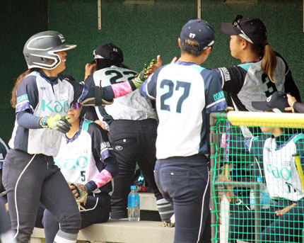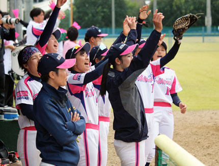 《本》:本塁打 《三》:三塁打 《二》:二塁打 | 「第58回日本女子ソフトボールリーグ」順位決定節は、大会初日(10月31日/金)悪天候のため、雨天・順延となった試合が、この日(11月2日/日)実施された。 「プラチナセクション」3位・4位、「サファイアセクション」3位・4位のチームにより「5位~8位」を決定する「順位決定節」Bブロック。4チームによる1回総当たりのリーグ戦2日目・第3試合は、ここまでの2試合勝ち星のない「サファイアセクション」4位・平林金属 Peachblossomsと、ここまで2試合「連勝」を飾り、「3連勝」での「1位通過」を狙う「プラチナセクション」4位・花王コスメ小田原 フェニックスが対戦した。 平林金属 Peachblossomsは2回表、花王コスメ小田原 フェニックスの「エース」栗原ななみを攻め、4番・橋本楓、5番・岡田望の連打で先制のチャンスをつかみ、次打者のショートゴロで二塁走者が三塁フォースアウトとなり、一死一・二塁となった後、7番・橋口紫織のセンター前へのタイムリー、8番・森香央理のセンターへの犠牲フライで、この回2点を先制した。 ![]() (※平林金属 Peachblossomsは2回表、2点を先制し、ベンチも盛り上がりを見せたが……) 花王コスメ小田原 フェニックスはその裏、敵失、内野安打、犠打で一死二・三塁とし、9番・森雅の打席でヒットエンドランを成功させ、1点を返した。 花王コスメ小田原 フェニックスは続く3回裏にも、5番・荻野真鈴にタイムリーが飛び出し、2-2の同点。4回裏には四死球から二死一・二塁の勝ち越しのチャンスをつかみ、2番・岡田南の適時二塁打で2点を追加。続く3番・鈴木未空のレフト前ヒットで一・三塁とした後、次打者への初球、一塁走者が二塁盗塁を仕掛け、一塁走者がタッチアウトとなる間に三塁走者がホームイン! この回3点を勝ち越し、5-2とリードを奪った。 ![]() (※花王コスメ小田原 フェニックスは4回裏、3点を勝ち越し!) 守っては、「エース」栗原ななみ、小森美咲とつなぐ継投策で、3回表から登板した小森美咲が好投。平林金属 Peachblossomsの反撃を1点に抑え、5-3で逃げ切り。Bブロック・リーグ戦を「3戦全勝」の1位で駆け抜け、「5位決定戦」に臨むことになった。 敗れた平林金属 PeachblossomsはBブロック・リーグ戦「3戦全敗」。「7位決定戦」に回ることになった。 | |||||||||||||||