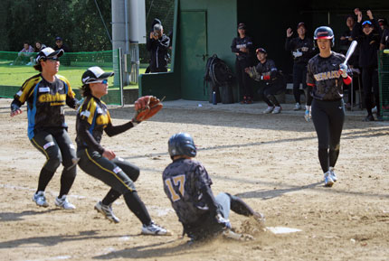 《本》:本塁打 《三》:三塁打 《二》:二塁打 | 「第58回日本女子ソフトボールリーグ」順位決定節は、初日(10月31日/金)が悪天候のため、雨天・順延となり、この日は当初予定通り、11月1日(土)に実施予定の試合が行われた。 「プラチナセクション」5位・6位、「サファイアセクション」5位・6位のチームにより「9位~12位」を決める「順位決定節」Cブロック。まずは4チームによる1回総当たりのリーグ戦が実施され、Cブロック第2試合は、初戦の厚木SC戦で序盤5点をリードされながら9-6の大逆転勝ち。初戦を勝利で飾った「プラチナセクション」5位のCitrine Ichinomiyaと、この試合が「初戦」となる「サファイアセクション」6位のルネス紅葉スポーツ柔整専門学校が対戦した。 ルネス紅葉スポーツ柔整専門学は2回裏、相手守備の乱れから先取点を奪い、続く3回裏には打者12人を送る猛攻。この回5本の長短打を集中し、一挙7点を奪い、8-0と序盤で大きくリードを奪った。 ![]() (※ルネス紅葉スポーツ柔整専門学校は序盤から猛攻! 大きくリードを奪う試合展開に……) Citrine Ichinomiyaは4回表、2番・藤田秋花、3番・宮本星南、4番・森光眞子、5番・林佑奈の4連打で2点を返したが「焼け石に水」。序盤の大量失点が響き、2-10で大敗。この日のダブルヘッダーは1勝1敗という結果となった。 ![]() (※Citrine Ichinomiyaはルネス紅葉スポーツ柔整専門学校に大敗) 勝ったルネス紅葉スポーツ柔整専門学校は投打が噛み合い、初戦に勝利。「エース」小林美紅が8安打されながらも2失点で完投し、打線が9安打・10得点を叩き出す「強力援護」。二桁得点を挙げ、10-2で圧勝した。 | |||||||||||||||