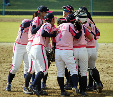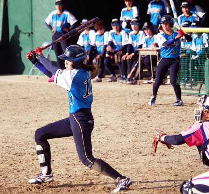 《本》:本塁打 《三》:三塁打 《二》:二塁打 | 「第58回日本女子ソフトボールリーグ」順位決定節は、初日(10月31日/金)が悪天候のため、雨天・順延となり、この日は当初予定通り、11月1日(土)に実施予定の試合が行われた。 「プラチナセクション」3位・4位、「サファイアセクション」3位・4位のチームにより「5位~8位」を決める「順位決定節」Bブロック。まずは4チームによる1回総当たりのリーグ戦が実施され、Bブロック第3試合は、初戦のMORI ALL WAVE KANOYA戦に3-2の逆転勝利。この日ダブルヘッダーとなる「サファイアセクション」3位の小泉病院 Blue Arrowsと、この試合が「初戦」となった「サファイアセクション」4位の平林金属 Peachblossomsが対戦した。 小泉病院 Blue Arrowsは2回裏、3安打に相手守備の乱れも絡み、4点を先取。続く3回裏には、5番・守時瑞希、6番・上田爽樺の長短打、8番・奥本純子の犠牲フライで2点を追加。4回裏にも4番・泉田美音のタイムリーで1点、5回裏にもワイルドピッチ、犠牲フライで2点と小刻みに加点し、11安打・9点を奪う猛攻で平林金属 Peachblossomsを圧倒した。 ![]() (※小泉病院 Blue Arrowsが猛打で平林金属 Peachblossomsを圧倒!) 守っては、先発・川村まつり、仙波クリスタル紗良とつなぐ継投策で平林金属 Peachblossoms打線をわずか2安打に抑え込む完封リレー。9-0で圧勝し、この日のダブルヘッダー「連勝」を飾った。 敗れた平林金属 Peachblossomsは投打に元気なく、完封負け。初戦を落とし、翌日(11月2日/日)のダブルヘッダーを迎えることになる。 ![]() (※初戦を落とした平林金属 Peachblossoms。ダブルヘッダー連勝の逆襲なるか!?) | |||||||||||||||