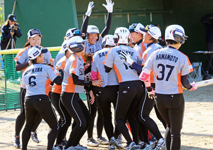 《本》:本塁打 《三》:三塁打 《二》:二塁打 | 「第58回日本女子ソフトボールリーグ」順位決定節は、大会初日(10月31日/金)悪天候のため、雨天・順延となり、11月1日(土)・2日(日)にAブロック・Bブロック・Cブロックに分かれ、1回総当たりのリーグ戦を実施。予備日(第4日)の11月3日(月・祝)、そのリーグ戦の順位に基づき、「最終順位決定戦」が行われた。 「プラチナセクション」3位・4位、「サファイアセクション」3位・4位のチームにより「5位~8位」を決定する「順位決定節」Bブロックは、1回総当たりのリーグ戦の結果、3戦全勝の花王コスメ小田原 フェニックス(プラチナセクション4位)が1位、2勝1敗の小泉病院 Blue Arrows(サファイアセクション3位)が2位、1勝2敗のMORI ALL WAVE KANOYA(プラチナセクション3位)が3位、3戦全敗の平林金属 Peachblossoms(サファイアセクション4位)が4位となり、この日のBブロック・第1試合は「7位決定戦」が行われ、3位のMORI ALL WAVE KANOYAと4位の平林金属 Peachblossomsが「7位」の座をかけ、対戦した。 後攻のMORI ALL WAVE KANOYAは初回、守備につくと同時にFP・ピッチャーの守備をDP・橋口紫織が兼務。「実質的な先発投手」となった橋口紫織を攻め、安打、敵失、四球等で二死満塁と攻め立て、6番・新谷静香がフルカウントまで粘って押し出しの四球。まず1点を先制すると、続く7番・佐々木桃花がセンター頭上を越える満塁ホームラン! 強烈な先制パンチを浴びせ、初回に大量5点を先制した。 ![]() (※MORI ALL WAVE KANOYAは初回、佐々木桃花の満塁ホームラン等で5点を先制!) MORI ALL WAVE KANOYAは1点を返されて迎えた5回裏にも、二死走者なしから5番・山根楓加、6番・新谷静の長短打で1点を追加。6-1とリードを広げ、再び5点差とした。 守っては、先発・猩々紫月が5回表に1点を失うと、6回表から「左腕」竹原由菜を投入。ベテランらしい落ち着いたピッチングで2イニングを無失点で締めくくり、6-1で快勝。「7位」の座を確保した。 「連覇」を狙った今シーズン、「プラチナセクション」3位で「順位決定節」Aブロックに進めず……「目標」と「モチベーション」を失ってしまったか、この「順位決定節」でもBブロック・リーグ戦でいきなり連敗。Bブロック「最上位」となる「5位決定戦」にも進むことができず、「寂しい秋」と「厳しい冬」を迎えることになった。 敗れた平林金属 Peachblossomsは、この「順位決定節」で1勝も挙げることができず、8位で終戦。今シーズンは最後まで投手起用に苦心し、この試合も今シーズンを「象徴」するような試合となり、初回から満塁本塁打を浴びる等、大量失点。来シーズンへ向け、投手陣の立て直しが「急務」となる。 ![]() (※今シーズンの戦いを「象徴」するかのような試合展開……投手陣の立て直しが急務だ) | |||||||||||||||