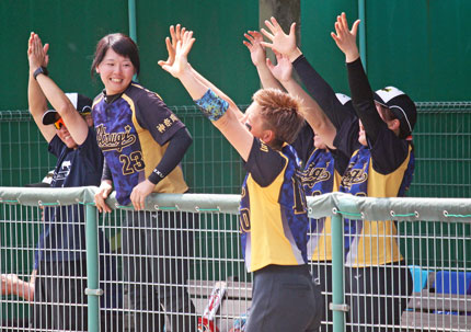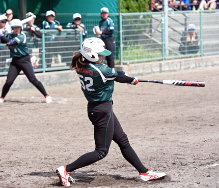 《本》:本塁打 《三》:三塁打 《二》:二塁打 | 「第58回日本女子ソフトボールリーグ」が4月19日(土)、石川県金沢市・金沢市営専光寺ソフトボール場で開幕を迎え、昨シーズン準優勝チーム、第4位、第6位、第8位、第10位、第12位の6チームで構成される「サファイアセクション」第1節第2試合は、昨シーズン、惜しくも準優勝。その準優勝の立役者となり、「MVP」を受賞した「エース」高田香がJD.LEAGUEの太陽誘電 ソルフィーユに移籍する等、オフシーズンに「大変動」があり、チーム名も改称し、「気分一新」。新たなシーズンに挑む「VONDS市原 Emerald Green」と、昨シーズン4位、一昨年の9位から大きく順位を上げたものの、こちらもオフシーズンにチームスタッフも選手の顔ぶれも大幅に入れ替え、今シーズンに臨む厚木SCが対戦した。 先攻の厚木SCは初回、VONDS市原 Emerald Greenの先発・渡邉双葉の立ち上がりを攻め、1番・小山優理が四球で出塁し、続く2番・木下奈津のライト前ヒットで一塁走者が一気に三塁まで進塁。一塁走者がすかさず盗塁し、二・三塁とチャンスを広げると、3番・加藤花澄がレフトへ犠牲フライを打ち上げ、三塁走者が生還。初回に1点を先制した。 ![]() (※初回に先制し、意気上がる厚木SCベンチ) 1点を追うVONDS市原 Emerald Greenは2回裏、厚木SCの先発・鈴木心菜に簡単に二死をとられた後、7番・島田彩那が四球を選び、出塁。8番・澁江マリンの三遊間を抜く安打で二死一・二塁とし、9番・千葉春海がレフト頭上を抜く二塁打を放ち、走者を一掃。逆転に成功すると、さらに1番・郡司美友、2番・石井愛華の連打で1点を追加。続く3番・塚本楓花が代わった古本緋里からスリーランホームランを放ち、この回打者一巡の猛攻で一挙6点を奪い、試合をひっくり返した。 ![]() (※VONDS市原 Emerald Greenが2回裏、二死からの集中打で一挙6点を奪い、逆転) 守っては、初回に1点を失い、立ち上がり不安定だった渡邉双葉が徐々に調子を挙げ、2回以降は厚木SC打線に追加点を許さず、9三振を奪う力投で1失点の完投勝利。6-1で大勝し、開幕初戦を勝利で飾った。 | |||||||||||||||