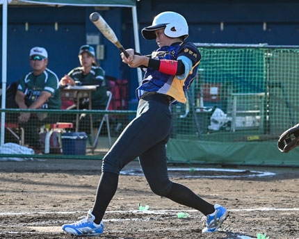 2点を追うVONDS市原 Emerald Greenは、直後の5回表、一死から8番・紺野穂乃香がサードへのバント安打で出塁し、連続四球で満塁の逆転機を得ると、2番・郡司美友のレフトへの犠牲フライで三塁走者が生還。1点を返し、1点差に迫ったが、反撃もここまで。2-3で惜敗し、通算成績6勝4敗となり、3位へ順位を落とした。