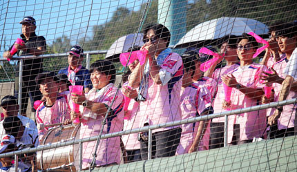 (※「ホーム」開催の平林金属 Peachblossomsは何度も大応援団を沸かせ、喜ばせる場面を作ったが……結果は1勝2敗)