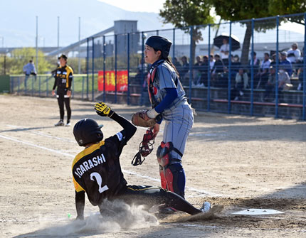 《本》:本塁打 《三》:三塁打 《二》:二塁打 | 「第59回日本女子ソフトボールリーグ」第1節・サファイアセクションは、4月18日(土)、福井県敦賀市・きらめきスタジアムで開幕。大会初日・第3試合は、昨シーズン9位、今シーズン「勝率5割」をめざすペヤングと、今シーズンから活動の拠点を愛知県一宮市から島根県雲南市に移し、チーム名も「Citrine SHIMANE」と改称。新たなスタートを切った「Citrine SHIMANE」が対戦した。 先攻のペヤングは初回、ルネス紅葉スポーツ柔整専門学校から移籍・加入したCitrine SHIMANE・先発の小林美紅の立ち上がりをとらえ、一死から安打で出塁した走者を一塁に置き、3番・山岸澪衣がセンター頭上を越えるツーランホームラン! 2点を先制した。 ![]() (※ペヤングは初回、山岸澪衣のツーランホームランで先手を取った) Citrine SHIMANEもその裏、1番・五十嵐綺羅良が二遊間を抜く安打で出塁。一死後、3番・髙橋みるが左中間に適時二塁打を放ち、すぐに1点を返した。 1点差に追い上げられたペヤングは3回表、安打、犠打、バント安打、盗塁等で二死二・三塁とし、5番・小谷輝のタイムリーで1点を追加し、再び2点差とし、4回表にも四球の走者を出し、2番・山坂香織が右中間を破る二塁打。さらに1点を追加し、4−1と3点差にリードを広げた。 Citrine SHIMANEも諦めず反撃。5回裏、代打・増田実莉、1番・五十嵐綺羅良、2番・前田京香の3連打、4番・森光眞子の中犠飛で2点を返し、1点差に迫った。 ![]() (※Citrine SHIMANEが追い上げる場面もあったのだが……) 4−3とペヤングが1点をリードして迎えた最終回、一死から四死球、野手選択で満塁のチャンスを作ると、6番・伊藤千夏の右越適時二塁打、代打・森口あんずのレフトスタンドへ運ぶスリーランホームランで一挙5点を奪い、完全に試合を決めてしまった。 ペヤングは先発・大橋歩実、上田弓月とつなぐ投手リレーでこのリードを守り切り、終わってみれば9-3で大勝。開幕初戦を勝利で飾った。 敗れたCitrine SHIMANEは途中1点差まで詰め寄る場面もあったが……最終回に力尽き、開幕黒星のスタートとなってしまった。 | |||||||||||||||