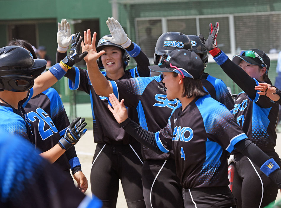 チーム防御率:0.92(1位) 奪三振:32(1位) 総失点:10(1位) チーム打率:2割5分2厘(5位) 総得点:27(1位) 総本塁打:2(2位) 総失策:3(1位) 守備率:0.980(2位) ※( )内数字は「プラチナセクション」6チームでの順位を示す 「王座奪還」に燃える靜甲は開幕連勝のスタート! 開幕ダッシュに成功した靜甲は、「第2節」初戦でCitrine Ichinomiyaと対戦。初回からエンジン全開! 打線が爆発し、5本の長打を含む13安打を放ち、16得点の猛攻。16-3で大勝し、開幕からの連勝を「3」に伸ばした。続く第2戦は、昨シーズンの「覇者」MORI ALL WAVE KANOYAとの対戦が組まれていたが、悪天候のため雨天順延となり、大会3日目、花王コスメ小田原 フェニックスと対戦。序盤で4点をリードされる苦しい試合展開となりながら、4回裏、土屋亜友未の犠飛でまず1点を返し、5回裏には「キャプテン」半田由佳の適時二塁打、山本佳世の起死回生の右越二塁打等で一挙3点を挙げ、序盤の劣勢を跳ね返し、4-4の同点に追いつき、延長タイブレークへと持ち込む「粘り」を見せた。結局、4-5で敗れ、開幕からの連勝がストップし、今シーズン「初黒星」を喫したものの、「敗れてなお強し!」の印象を残し、最終戦となった予備日のMORI ALL WAVE KANOYA戦を2-1で競り勝ち、通算成績4勝1敗。「ホーム」で3連勝を飾った大和電機 Blue Lakersと「同率首位」に並んだが、「第1節」開幕戦での「直接対決」で勝利(3-0の完封勝ち)していたことで、「プラチナセクション」1位で「交流節」に臨むことになった。 今シーズン前半戦の戦いを振り返ってみると、まず投手陣が安定。チーム防御率0.92、奪三振32、総失点10はいずれも「プラチナセクション」トップの数字。小井沼美月が3試合・18イニングを投げ、防御率0.39・奪三振21、3勝を挙げる活躍! 望月ひよりが4試合・19イニングを投げ、1勝1敗ながら防御率1.11と安定した数字を残し、チームを支えている。 打線はチーム打率2割5分2厘とこの数字だけをみると、あまり「当たっていない」印象を受けるが、総得点27と「プラチナセクション」トップの数字を叩き出している。「勝負どころ」で確実に得点をモノにする「打線のつながり」と「勝負強さ」でカバーしている。 「ルーキー」小黒美空が打率3割8分5厘・打点3の活躍で「打線の核」となり、「キャプテン」半田由佳も打率3割1分6厘・打点2と好調! 「4番」に座る山本佳世も打率は2割5分ながら打点5と「勝負強さ」を見せ、「主砲」の役割を果たしている。また、伊藤茉奈も打率は2割と決して高くはないが、持前の「俊足」を活かし、7盗塁を記録する等、相手守備陣の「脅威」となる活躍を見せている。 「交流節」では初戦で「サファイアセクション」2位のVONDS市原 Emerald Green、第2戦で同4位・平林金属 Peachblossoms、最終戦で同6位・ペヤングとの対戦が組まれた。 VONDS市原 Emerald Greenは昨シーズン準優勝、今シーズンもここまで4勝1敗と好調のチーム。靜甲としては今シーズン成長著しい投手陣が相手打線を抑え込み、チャンスを確実にモノにしていく「いつも通り」の試合展開に持ち込みたいたころだ。 第2戦の相手・平林金属 Peachblossomsはここまで2勝3敗。投打ともに「決め手」を欠いている印象があり、好調な投手陣がしっかりと相手打線を抑え、先取点を挙げる試合展開に持ち込むことができれば「勝利」が近づく。 最終戦で対戦するペヤングは前半戦1勝4敗で最下位。投打の数字を見る限り、靜甲の優位は動きそうにない。「交流節」でも「いつも通り」の「靜甲らしい」試合を展開することができれば……「王座奪還」がグッと現実味を帯びてくる 「交流節」 靜甲 試合予定 7月4日(金) 対 VONDS市原 Emerald Green(サファイアセクション2位)※9:30試合開始予定 対 平林金属 Peachblossoms(サファイアセクション4位)※12:00試合開始予定 7月5日(土) 対 ペヤング(サファイアセクション6位)※9:30試合開始予定 |