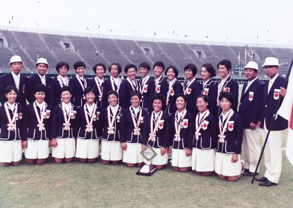 1970年「第2回世界女子選手権大会」で優勝し、「世界一」となった室谷妙子さん(後列左から7人目)