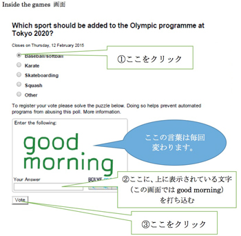 [2015年01月24日] 2020年オリンピック競技に関するアンケートへの協力のお願いツイート 「2020年東京オリンピックで追加されるべき競技は?」というウェブアンケート調査に【野球・ソフトボール】への一票をお願い致します。 現在、2020年の東京五輪ソフトボール競技復活に向けて様々な活動が行われておりますが、 その活動の一つとして、「2020年東京オリンピックで追加されるべき競技は何ですか?」という タイトルでアンケート調査が行われております。 つきましては、以下の通りアンケートへのご回答をよろしくお願いいたします。 以下URLへアクセス 。 http://www.insidethegames.biz/polls/92-which-sport-should-be-added-to-the-olympic-programme-at-tokyo-2020 アンケート締め切り:2月12日(木) ※この投票は、1度投票しても、日付が変われば、2月12日(木)まで1日1回投票できます。 ※異なる端末からアクセスすると(例えば、PCとスマートフォンなど)、1日に複数回投票できます。